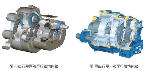 該種結構主要用于2MW以及2MW以下功率的風電齒輪箱,用一組平行級代替行,可靠性高,但體積與重量大。