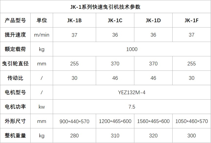 - 工作效率大幅提升。JK-1B型曳引機的的提升速度是37m/min,是慢速卷揚機速度的2倍。